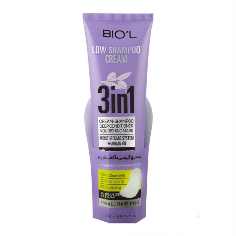 شامپو کرمی 3 در 1 بیول محصولی کاربردی از برند ایرانی بیول است که کف ملایمی ایجاد می کند. این محصول به صورت همزمان می تواند وظایف شامپو، نرم کننده و ماسک مو را اجرا کند. بافت این شامپو کرمی است و به خصوص برای موهای دکلره، فر، مجعد، رنگ شده و آسیب دیده پیشنهاد می شود.