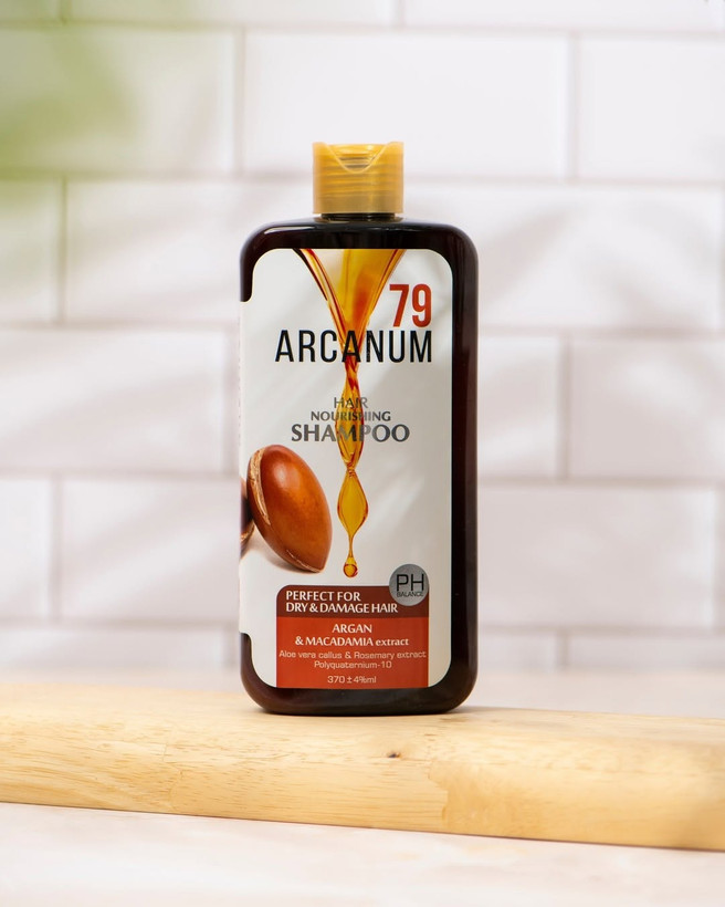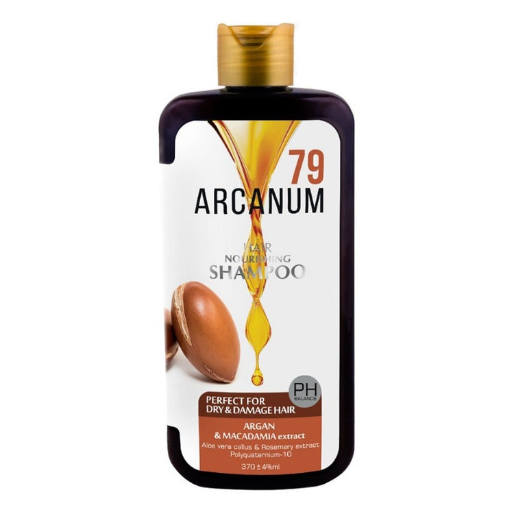 شامپو فاقد سولفات حاوی روغن آرگان و ماکادمیا مناسب موهای آسیب دیده و خشک آرکانوم ۳۷۰ میل