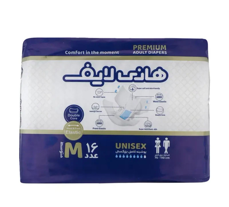 پوشینه بزرگسال هانی لایف سایز متوسط بسته 16 عددی