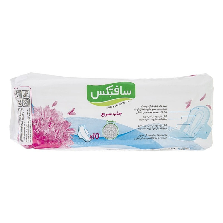 نوار بهداشتی بالدار مشبک سافتکس سایز بزرگ بسته 10 عددی