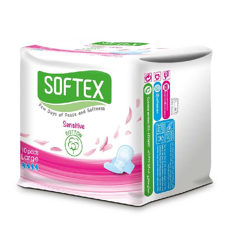 نوار بهداشتی بالدار فلاف نازک بزرگ سافتکس 10 شیت کتان امباس دار سافتکس