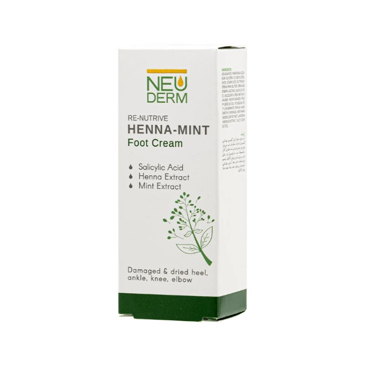 پاها پرکارترین عضو بدن هستند که استفاده مکرر از جوراب و کفش و فشار وزن بدن در طولانی مدت، سبب استهلاک پوست آنها میشود. اگر از سلامت پاهای خود غفلت کنیم، مشکلاتی چون زبری و ترک پوست بروز میکند. خشک و ضخیم شدن پوست کف پا و عمیق شدن ترکها به خصوص در ناحیه پاشنه پا علاوه بر اینکه ظاهری نامناسب در کف پاها پدید میآورد، گاهی با سوزش دردناک و خارش همراه است. برای رفع این مشکلات، کرم پا رینوتریو حنا و نعناع نئودرم با بهرهگیری از عصارههای حنا و نعناع به بازار عرضه شده است که در کنار سالسیلیک اسید باعث بازسازی و التیام و تقویت پوست پا میشود.