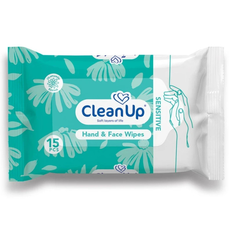 دستمال مرطوب پاک کننده دست و صورت کلین آپ مناسب پوست حساس بسته 15 عددی
