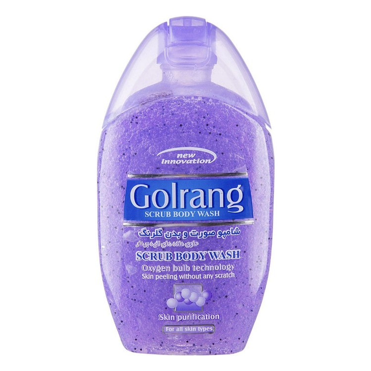 شامپو بدن اسکراب 280گرمی بنفش گلرنگ حاوی گرانولهای طبیعی جهت لایه برداری از پوست بوده که موجب بازسازی سلولهای مرده از سطح پوست شده و پوست را شاداب و با طراوت میکند.