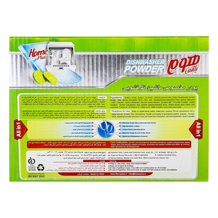 پودر ماشین ظرفشویی هوم پلاس با رایحه لیمو ۱ کیلویی