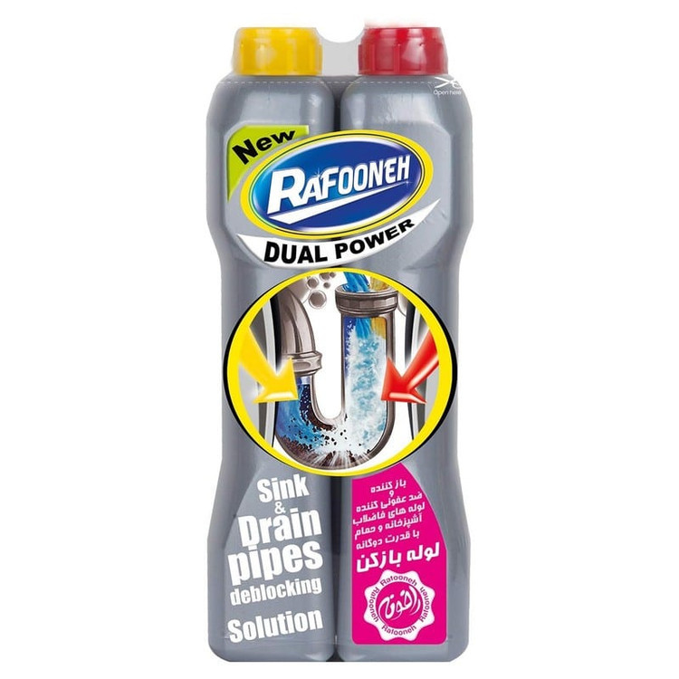 لوله بازکن دوقلوی رافونه با فرمولاسیونی خاص و قدرتمند، قادر است گرفتگیهای حاصل از چربی، مواد غذایی و مو را به طور همزمان از بین ببرد. این محصول شامل دو فاز متفاوت است؛ فاز اول برای حل چربیها و فاز دوم برای حل موهای فشرده و دیگر ضایعات. با استفاده از این لوله بازکن، تمامی مسیرهای مسدود شده لولهها به سرعت باز شده و همچنین بوی نامطبوع فاضلاب و باکتریها به طور کامل از بین میرود.