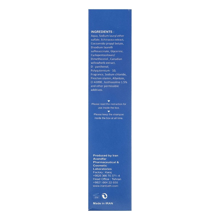 مقدار مناسبی از شامپو را روی موهای خیس و کف سر ریخته و به آرامی ماساژ داده، پس از دو الی سه دقیقه آبکشی نمائید.