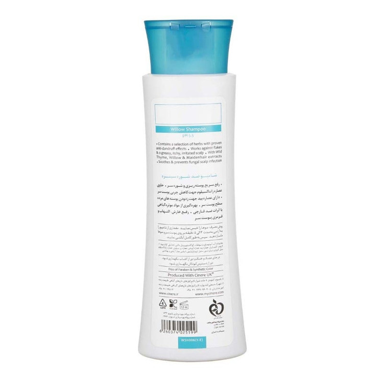 شامپو ضد شوره سر سینره بر اساس خواص ضد قارچ و ضد باکتر طبیعی همچون پر سیاوش، بید و آویشن تولید شده است .اثر بخشی این شامپو به سرعت پس از استفاده در هفته اول به خوبی مشهود می شود و در عرض یک ماه پوسته ریزی به طور کامل از بین رفته و خارش و قرمزی سر به سرعت از بین می رود. این شامپو باعث تغییر رنگ در موهای رنگ شده نمی شود.