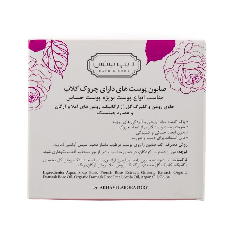 صابون کرمی گلاب دیپ سنس مناسب انواع پوست میباشد.