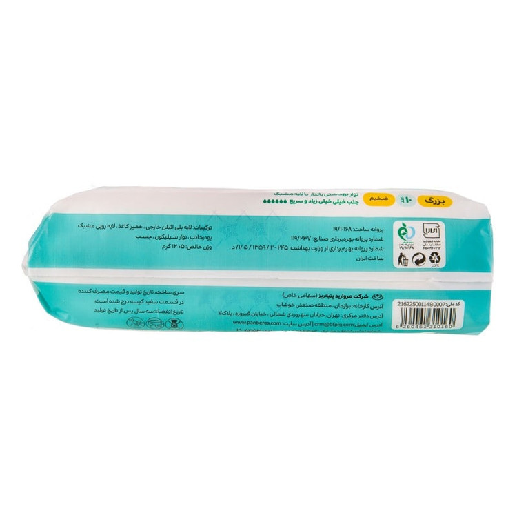 نوار بهداشتی روزانه با لایه مشبک سایز بزرگ پنبه ریز ۱۰ عددی